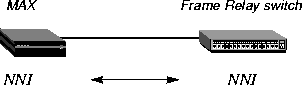 An NNI interface connection allows the MAX to appear as a Frame Relay network interface based on the NNI specifications. It performs both DTE and DCE link management, and allows two separate Frame Relay networks to connect via a common protocol. See Configuring an NNI interface.