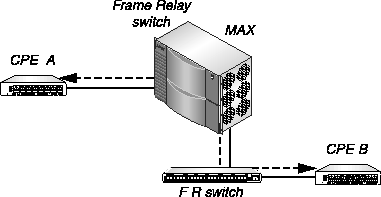 When the MAX receives packets, it doesn't examine the destination address in the packets. The MAX simply forwards the data stream out to the Frame Relay switch on DLCI 17.